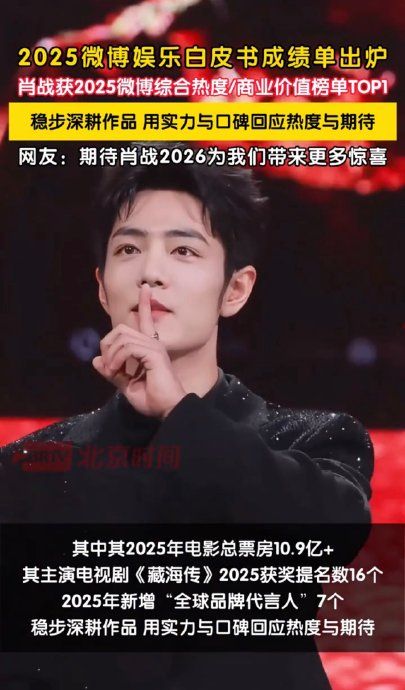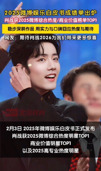 肖战获2025微博综合热度榜首,官宣出席微博之夜