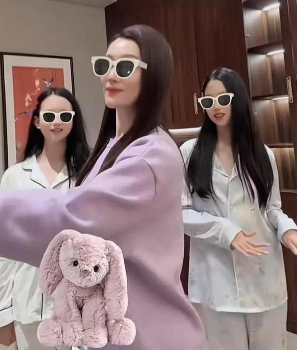 在公开的全家福中,谭晶身着紫色卫衣套装,长发自然垂落,保养得宜的状态完全看不出即将迈入50岁。 她的一对双胞胎女儿穿着同款浅绿色睡衣,姐妹俩容貌出众,眉眼间更像母亲。 存在细微的身高差异,其中一人与谭晶仅相差半头,另一人则稍矮一些。