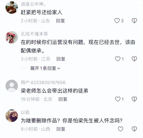 不少网民随着新闻的播出,纷纷跑到“梁小龙永远活在我们心中”账号下留言,希望该账号运营人把账号交还给梁小龙的家人。