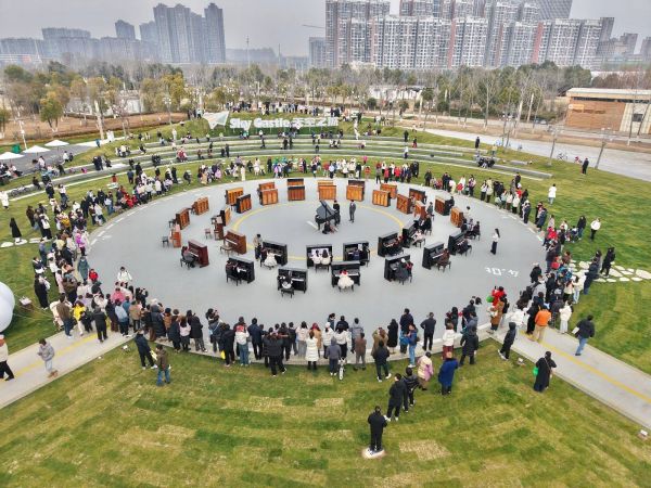 50多人在停机坪合奏40台钢琴:由市民演奏,最小不到4岁,有人从外地赶来