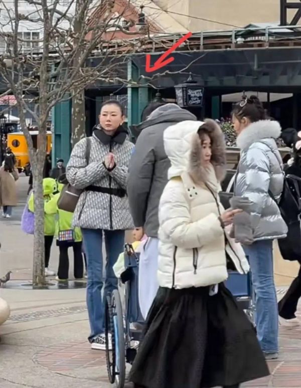 明道夫妇带娃逛街,老婆抱着孩子,夫妻俩穿情侣装