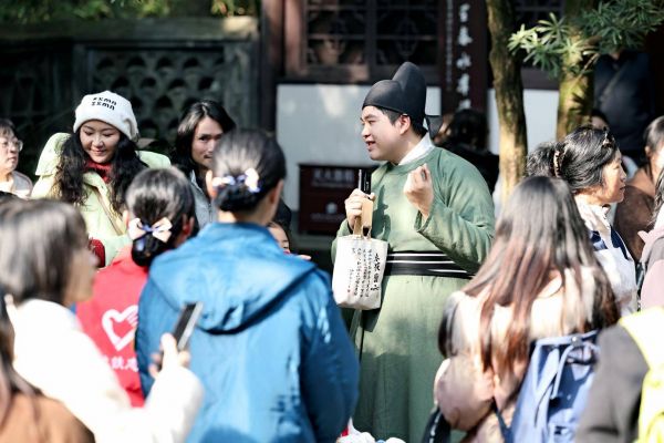 这一段段佳话和佳作,被扮演两位诗人的草堂博物馆讲解员演绎得淋漓尽致,吸引市民游客驻足观看。
