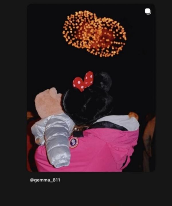 那一刻,所有的喧嚣仿佛都消失了。 照片定格的是她们的背影:妈妈微微低头贴着宝宝,宝宝的小脑袋昂着,共同望向那片璀璨的魔法天空。 画面里满是温柔和守护的意味。 鬼鬼在另一个平台晒出了这张背影照,就是那句“妹子第一次看烟火”。 没有长篇大论,但所有当妈的,大概都能懂那种想带她看遍世间所有美好的心情。