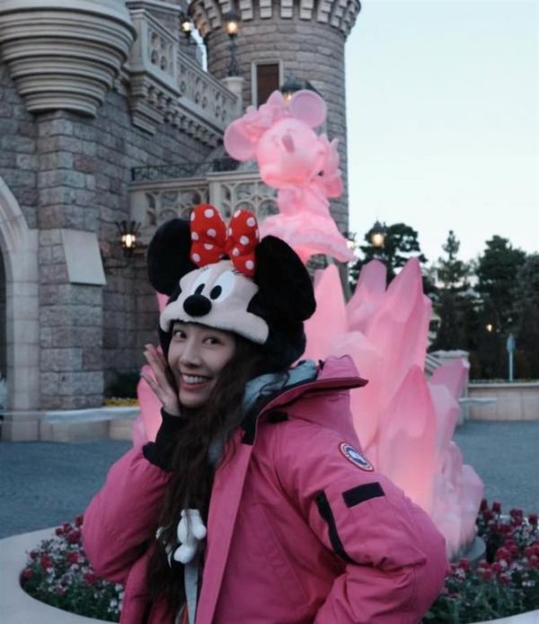 当天的鬼鬼,打扮得那叫一个少女。 一件粉色的“大鹅”羽绒服,头上戴着一顶可爱的米奇耳朵帽子,完全看不出已经是孩子的妈妈。 她在旋转木马前托着脸颊自拍,笑容灿烂得跟园区里的阳光似的。 里头穿了件灰色卫衣,配着蓝色牛仔裤,卫衣上还有个像小背包一样的袋子,这身打扮,说她是在校大学生都有人信。