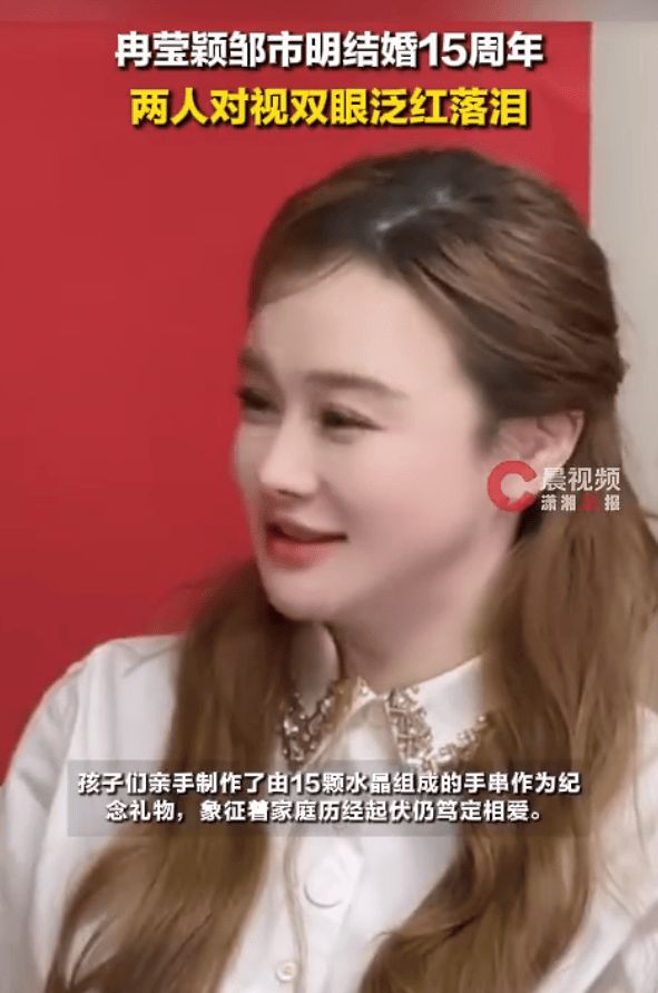 2月12日,冉莹颖在社交平台发文,纪念与邹市明结婚15周年的水晶婚,两人深情对视、感动落泪。孩子们还亲手制作了一串由15颗水晶组成的手链当作礼物,寓意一家人历经风雨,依旧相爱相守。