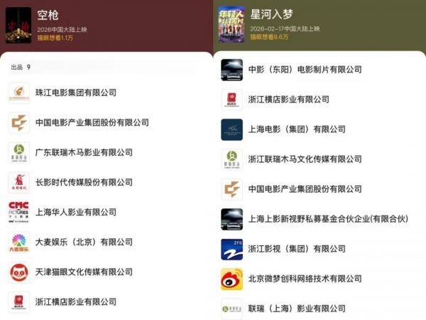 在2025年春节档扮演绝对主角的光线传媒,今年则只是“友情出演”——仅参与出品《熊猫计划之部落奇遇记》一部电影,联合出品了《飞驰人生3》《惊蛰无声》。在这些电影的出品名单里,光线传媒排位都不靠前,参与程度并不深。