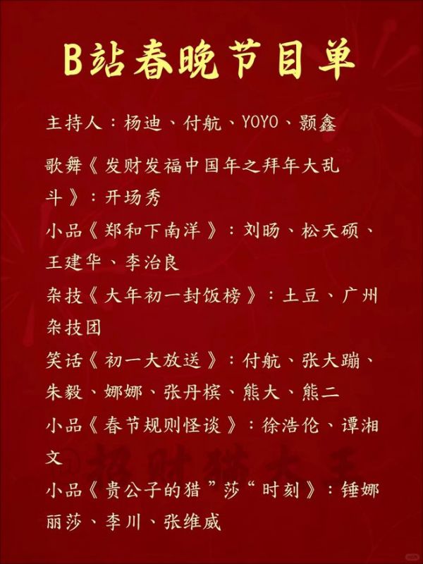 B 站 2026 春晚节目单官宣,冯巩宋小宝同台,土豆吕严再出梗