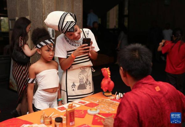 2月13日,在位于南非比勒陀利亚的南非国家剧院,人们体验中国文化。
