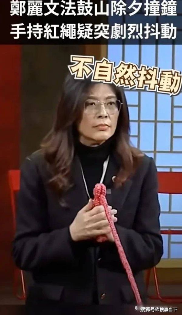 大年初一,国民党主席郑丽文在庙里主持撞钟祈福活动,直播画面中她拿起红绳敲钟时,手和身体突然连续抖动五六秒,幅度挺大,但她脸色不变,也没人搀扶,自己站稳继续完成仪式,现场没人叫医生,事后也没提身体有问题。