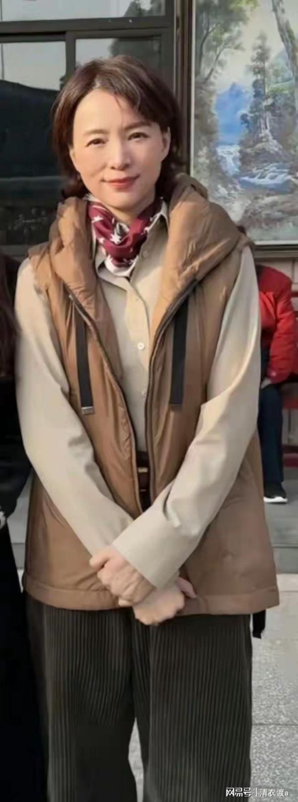 年初二,53岁董卿回江苏亲戚家吃饭,穿时尚马甲,皮肤白气质好