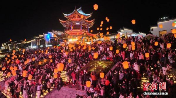 现场观众集体放飞孔明灯。屯溪区委宣传部供图