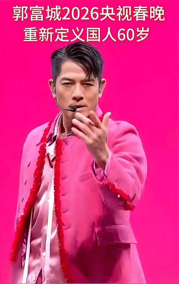 2026年,郭富城已61岁了。他身着合身的玫粉色西装,身材像白杨树一样挺拔。