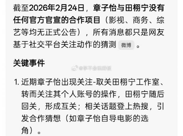 #章子怡粉丝不满章子怡关注田栩宁# 章子怡取关工作室换成田栩宁今日,章子怡关注田栩宁后,引发不少讨论,不少网友猜测田栩宁要和章子怡有合作了。而章子怡粉丝好像挺不满意的,认为章子怡只是手滑,而且并不觉得他两会有合作如果是真的,你期待吗?#章子怡田栩宁 合作#