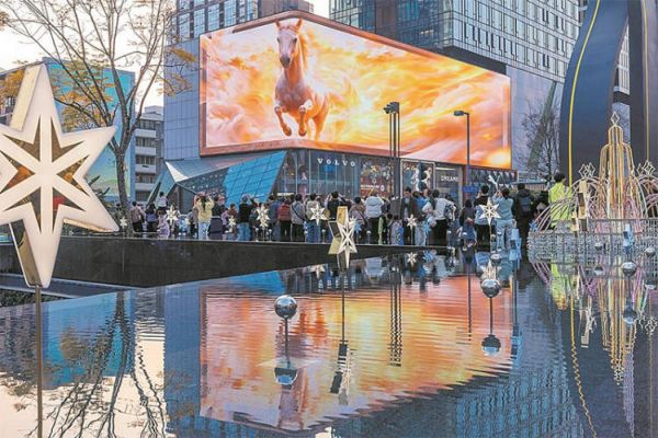 马年春节太古里裸眼3D大屏上飞马贺新春。 成都日报锦观新闻记者 彭浩 摄
