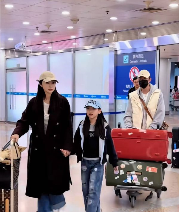 在三亚返回的路上,张维伊负责推着行李箱,董璇负责牵着女儿小酒窝的手。这个画面也是意外和谐,很幸福很温馨。