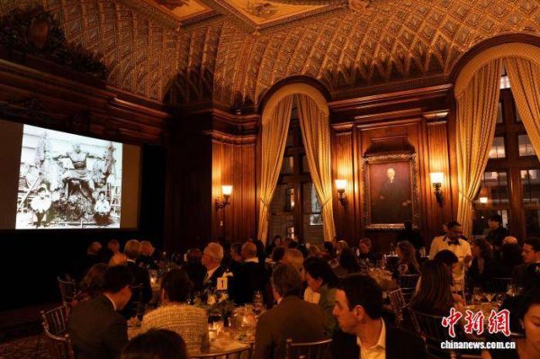当地时间2月25日,“刘士铭百年诞辰慈善晚宴”在美国纽约举行,晚宴现场播放纪念影片回顾刘士铭的人生轨迹。 中新社记者 廖攀 摄