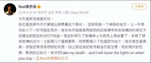 费曼曾公开发文坦言自己精神与肉体都有点累了,没有想发动态的动力,甚至直言自己本身也是有病,随后宣布退出该社交平台。