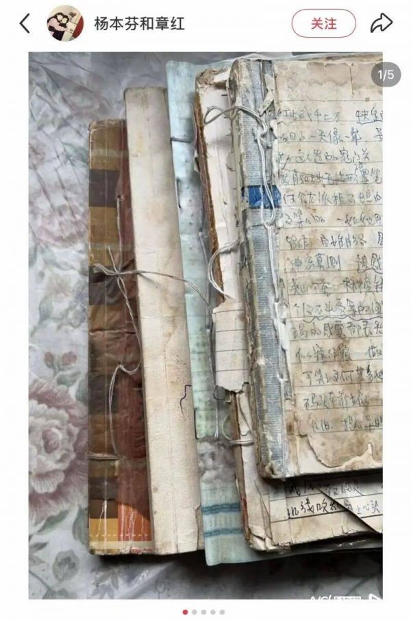 杨本芬在回应文章中附上了几本年代已久,已翻到破烂的摘抄本的照片。她坦言,自己六十岁才开始有写作的念头,阅读是她学习写作的唯一途径。和许多初学者一样,她养成了在阅读时摘抄“好词好句”的习惯。“那些摘抄本都被我翻烂了,一些词句和段落就印在脑子里,写作时遇到相似的心境或场景,有时它们便会跳出来。有时候觉得别人的表达更妥帖,便也用到自己笔下。”