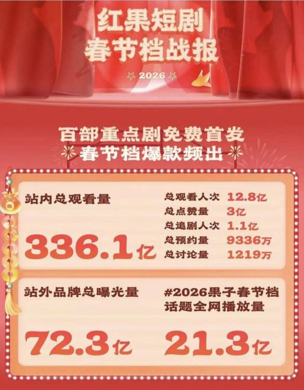 超强播放量、破次元壁的生态、反向输出大屏卫视,红果短剧2026年春节档的表现无疑交出了具有行业分水岭意义的答卷,这不仅是一场数据的狂欢,更展现出短剧赛道显著的生命力。