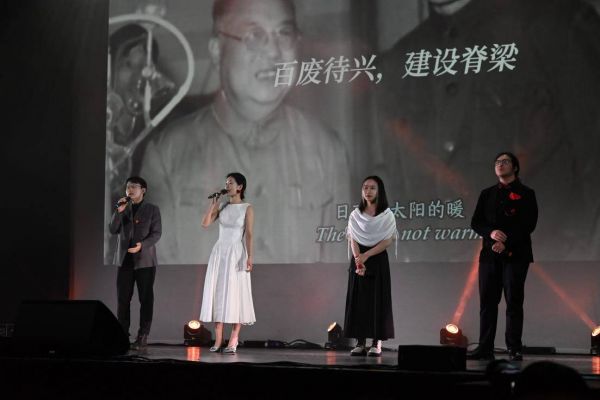当晚最打动观众的节目之一,是歌舞表演《落叶归根》。节目通过音乐与舞蹈串联起150余年来几代中国留学生的故事——从晚清走出国门求学的先行者,到今天活跃在世界舞台上的青年学子。随着旋律缓缓展开,舞台背景投影出历史画面与文字,一段跨越世纪的留学史在观众眼前徐徐铺开。当歌声唱到“落叶归根”时,不少观众悄悄举起手机灯光。来自北京的牛津博士生张同学说,这个节目让他想起自己出国读书时家人的送别,“在海外学习生活,既是在追求梦想,也是在为将来更好地回馈祖国积累力量。”这个节目不仅讲述了留学生的历史,也表达了海外学子始终与祖国发展命运相连的情感。