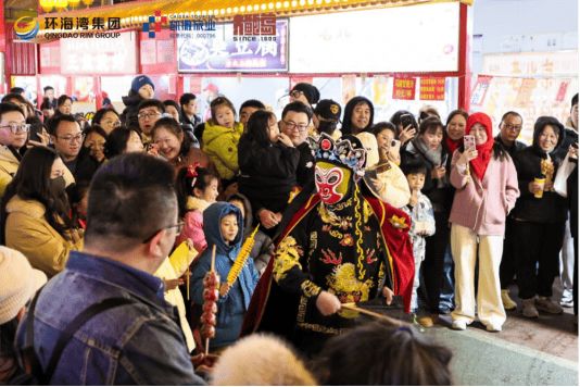 非遗活化,是海云庵会场的核心竞争力,更是城市文脉的生动传承。本届会场汇聚40余个国、省、市级非遗项目和老字号,皮影戏、鲁锦、木版画拓印等体验区温情开放,传承人一对一现场指导,让游客在指尖互动中触摸传统文化的温度;“灯宵非遗宴·舞乐戏相伴”非遗民俗嘉年华每日上演,茂腔、柳腔等本土戏曲轮番登台,锣鼓铿锵间,尽是老青岛的民俗底蕴。“我们希望通过‘展示+体验’的方式,让非遗走出博物馆,走进大众生活。”非遗糖画传承人张师傅一边为游客制作马年生肖糖画,一边介绍,“今年特意设计了马年主题的糖画和糖球,既贴合节日氛围,也让年轻人愿意主动了解非遗、传承非遗。”而“灯宵非遗宴·舞乐戏相伴”展演与“国风夜海云”国潮演出双线并行,白天是锣鼓喧天的民俗大戏,夜晚是年轻人追捧的说唱摇滚,实现传统与潮流的无缝对接,让古老民俗在当代语境中焕发新的生命力。