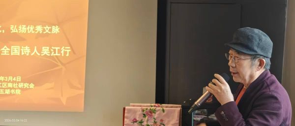 烟雨江南,文脉流长。3月4日,作为第十届华语诗歌春晚苏州分会场、第34季阅读苏州“诗意栖居 江南吟怀”诗歌大会系列活动之一,“寻梦南社——全国诗人吴江行”雅集在黎里五湖书院举行。活动由苏州市吴江区南社研究会与苏州市吴江区诗词协会、黎里五湖书院联合举办。来自各地的诗人、作家、学者相聚吴江,寻访南社先贤足迹,感受水乡文化底蕴,以诗词会友,以笔墨传情。