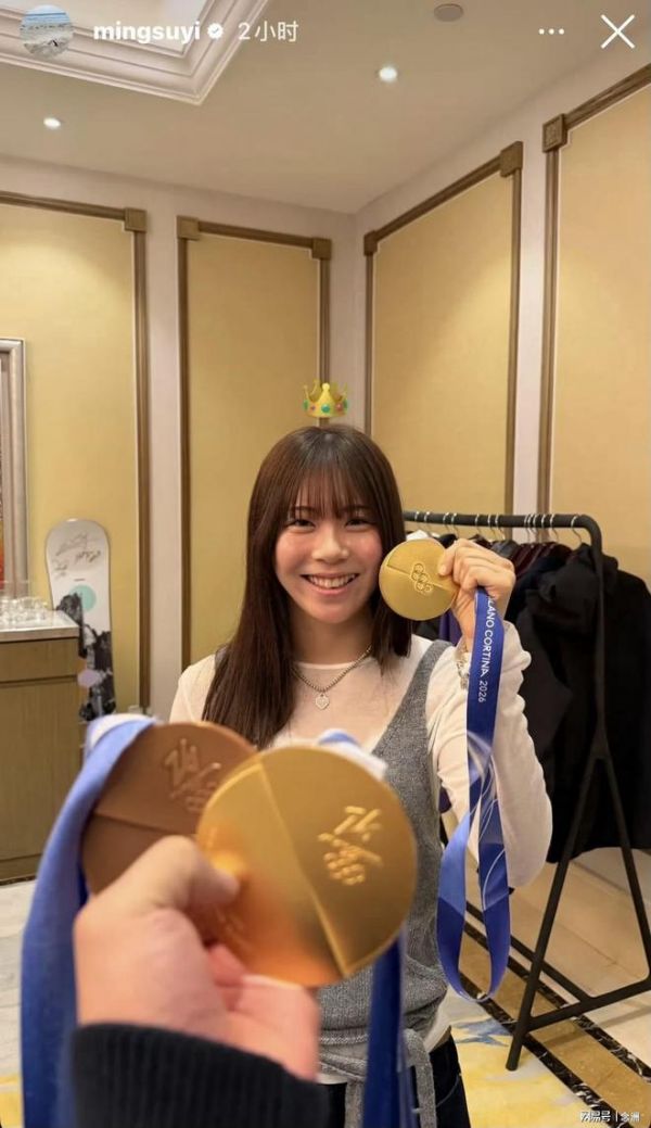 朱易为何突然这么做?原因很可能是苏翊鸣自己的一个操作。就在事情发生的两个小时之前,苏翊鸣晒出了与一个女生的互动:苏翊鸣本人虽然没有露脸,但是手拿1金1银两枚奖牌,而对面的女生则拿着1枚奥运金牌,笑得非常甜美——这张照片确实看着挺“暧昧”的。