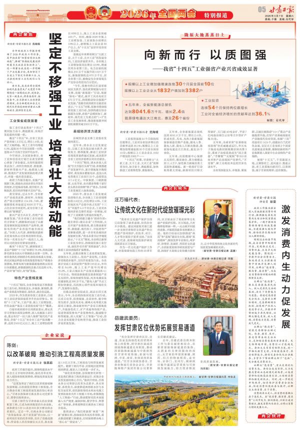 “我省在文化遗产保护方面已经取得了诸多成绩,但仍存在不少挑战。建议国家相关部门进一步支持甘肃做好文化遗产和自然遗产协同保护,在技术、项目、人才等方面给予更多支持。”全国人大代表、敦煌研究院保护研究部副部长汪万福说。