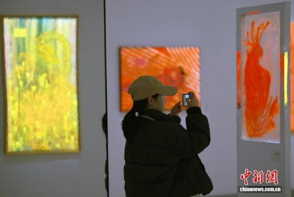 图为在3月13日预展中,参观者拍摄展出的作品。中新社记者 王磊 摄