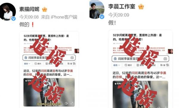 值得庆幸的是,李晨工作室及时回应,发布红字“造谣”的声明,闫妮本人也出面澄清。谣言终于被正面回应打消。
