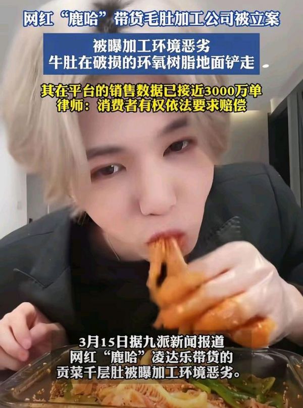 前不久刚宣布当爸爸的网红“鹿哈”要寝食难安了。3月15日打假日上,几乎所有人都知道了,他带货卖出3000万单的贡菜千层肚,被揪出有严重卫生安全问题。