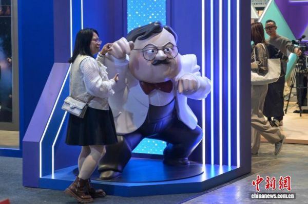 图为观众与展品合影。中新网记者 陈永诺 摄
