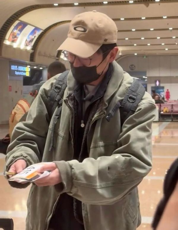 两个人各自推着行李箱并排往前走,不用说话都透着满满的默契,一看就是一起生活了很多年的样子。路上碰到粉丝求签名,朱亚文一点明星架子都没有,想都没想就爽快答应,亲和力直接拉满。沈佳妮也没催,就安安静静站在一边等,全程都很有耐心,氛围特别好。