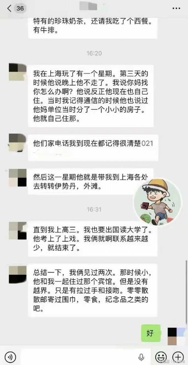 两人短暂相处数日,同住小旅馆,但始终保持分寸,止于拥抱亲吻,并无任何越界行为。这段感情最终因女方远赴加拿大留学、异地距离渐远、人生轨迹不同而自然落幕,没有争吵,没有纠葛,本应是一段安静封存在岁月里的青春回忆。