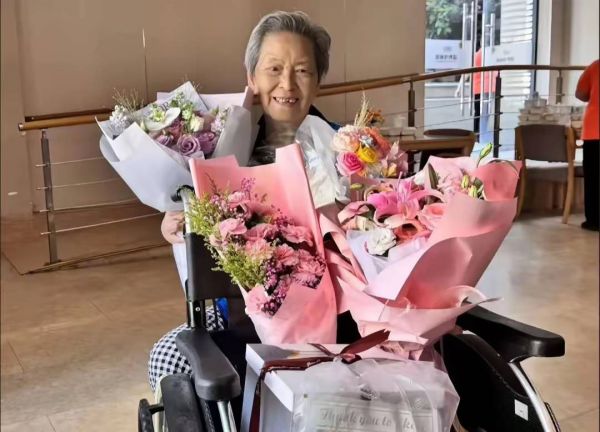 虽然顾艳不能时刻陪着母亲,但节日的时候会特意给母亲送花。即便是住进了养老院,周贤珍也能感受到女儿的爱。