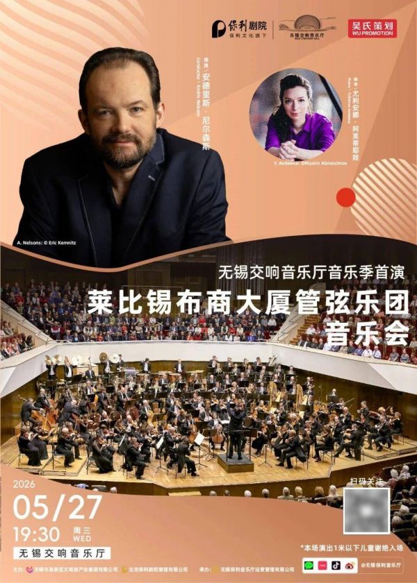 3月23日,无锡交响音乐厅“乐响无锡 悦享世界”主题的启航音乐季正式发布,5月27日启幕,持续至7月31日。启航音乐季的重磅开幕将由世界著名乐团莱比锡布商大厦管弦乐团奏响,由国际知名指挥家安德里斯·尼尔森斯执棒,呈现俄罗斯作曲家谢尔盖·拉赫玛尼诺夫的《C小调第二钢琴协奏曲》以及德米特里·肖斯塔科维奇的《E小调第十交响曲》。