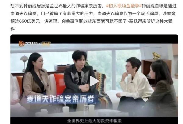 据官博透露,老港星钟丽缇在后面委托中自曝曾遭遇过道夫诈骗案,当时她身边很多朋友都把全部身家投了进去,结果呢?什么都没了。那种信任了一个人并把一辈子积蓄都搭进去的绝望,光听她描述就让人感到窒息。
