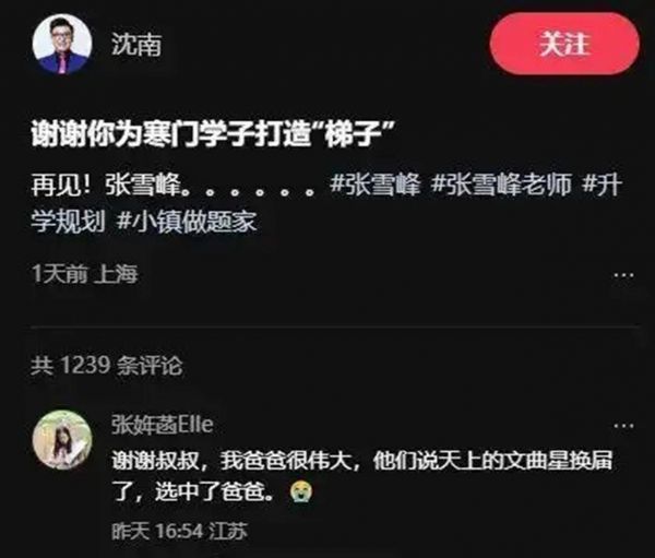 女儿发文说“我爸爸很伟大”,网友却读出了张雪峰的真正死因——可以说他是活活“累”死的。有人说爸爸给女儿留下很多钱,可再多的钱能代替爸爸吗?