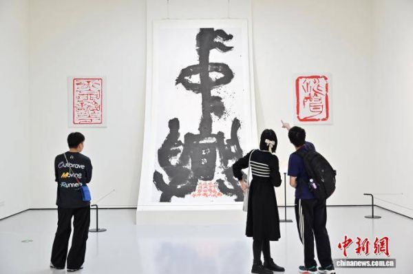 图为篆书作品《中兴》吸引参观者。中新社记者 陈楚红 摄
