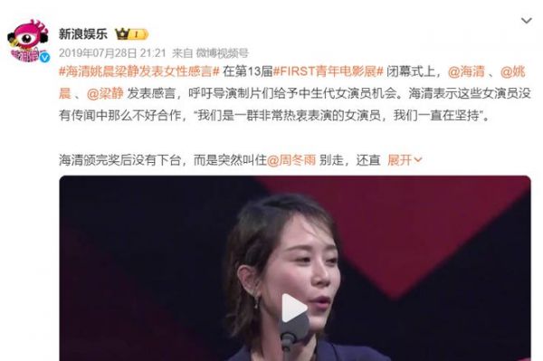这一年海清和多位女演员在FIRST影展上发表了著名的女演员宣言,