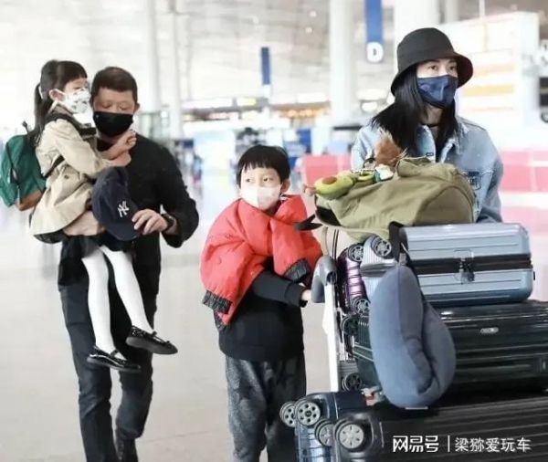 曹郁姚晨一家四口 曹郁抱娃姚晨推行李一家人低调赶行程
