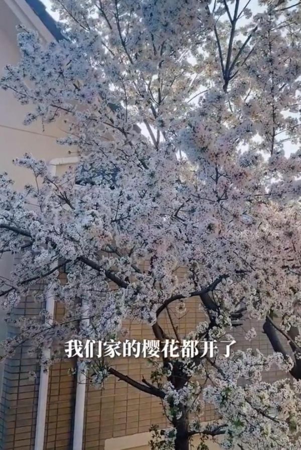 视频一开始,伊能静晒出自家豪宅外的的樱花树,春天到了,樱花盛开,粉白相间的花朵春意盎然。