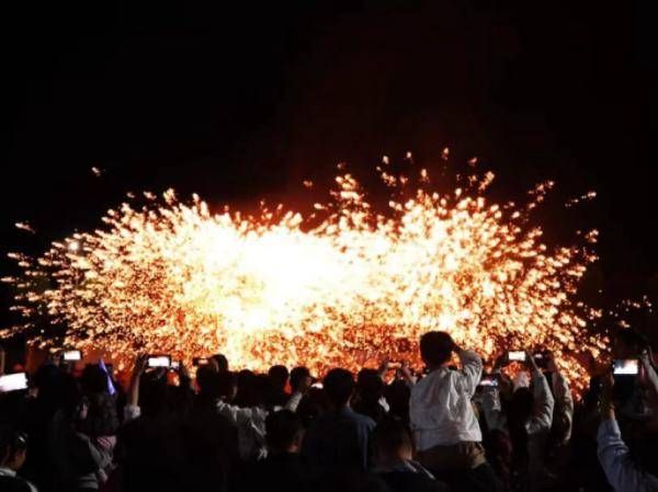 广西融安:江上打铁花