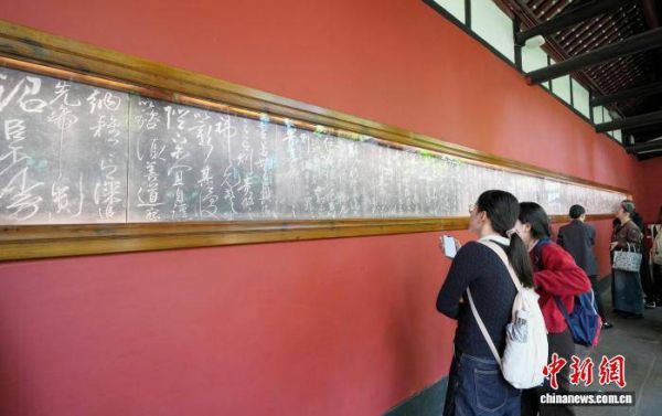 4月4日是清明假期首日,成都武侯祠博物馆迎来大量游客。馆内主要景点如刘备殿、诸葛亮殿前人头攒动,游人如织。来自全国各地的游客趁着假期前来缅怀先贤、了解三国历史,感受传统文化氛围。图为游客在武侯祠参观《出师表》。中新社记者 安源 摄
