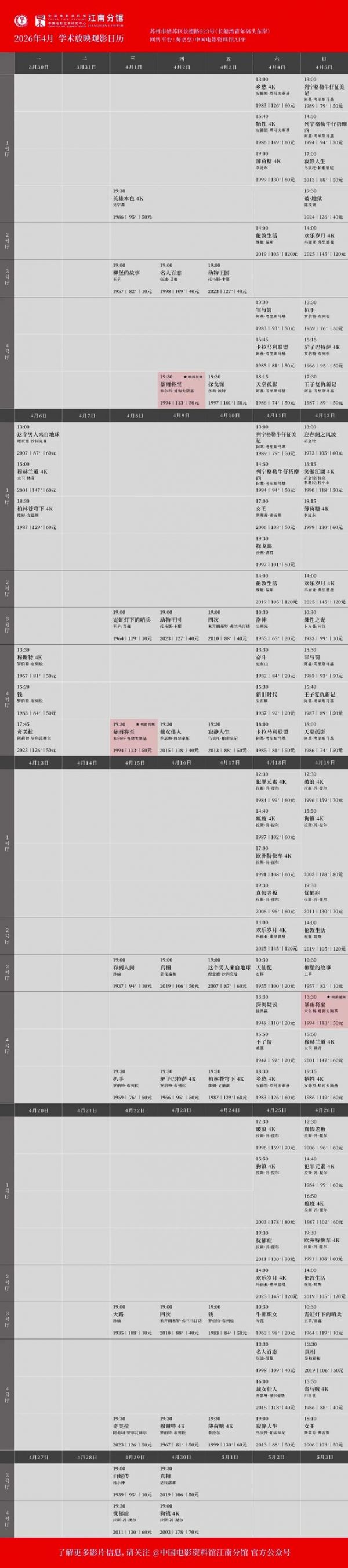 苏州今日放映|2026.4.5 周日