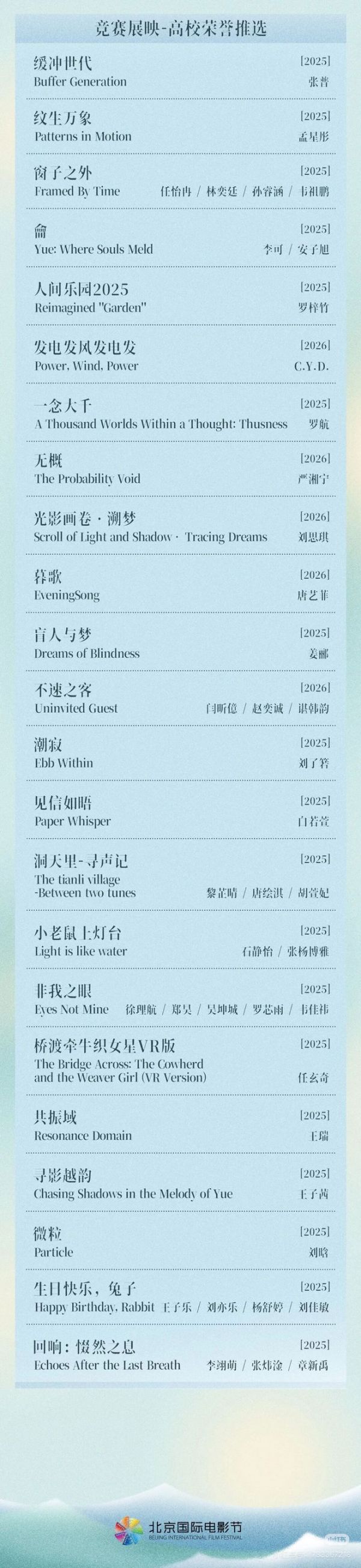 第十六届北影节“天坛奖”完整片单公布!
