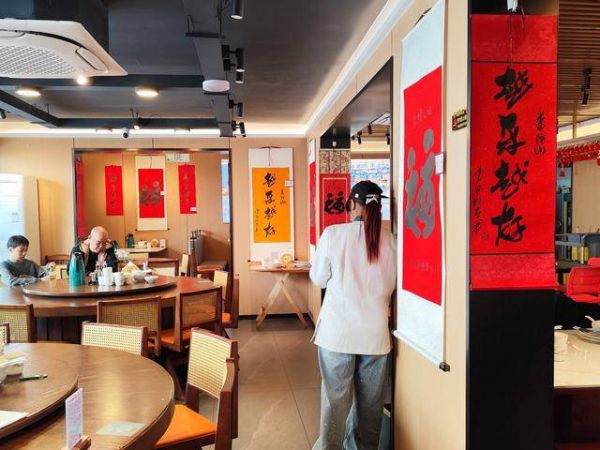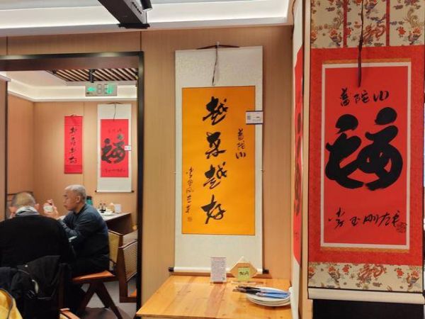 同时餐厅坚守佛教素食文化,精心打造禅意素斋系列,遵循佛教戒杀护生、清心素食的理念,选用当季新鲜菌菇、时令蔬果、五谷杂粮,精工细作素面、素斋拼盘、禅意养生汤品等,菜品素雅清淡、色香味俱全,契合信众礼佛斋戒的需求,让食客在品尝素食的同时,体悟佛教素食的慈悲与清净。餐厅空间设计以禅意祈福为核心,墙面陈列李玉刚书法原作、平安福文化图腾,搭配禅意软装与淡淡香薰,营造出福气萦绕、静谧雅致的用餐氛围,食客无论是品尝渔家海鲜,还是享用禅意素斋,都能近距离感受书法艺术与佛教禅韵的双重熏陶,实现“食味、赏艺、祈福”三位一体的独特体验。