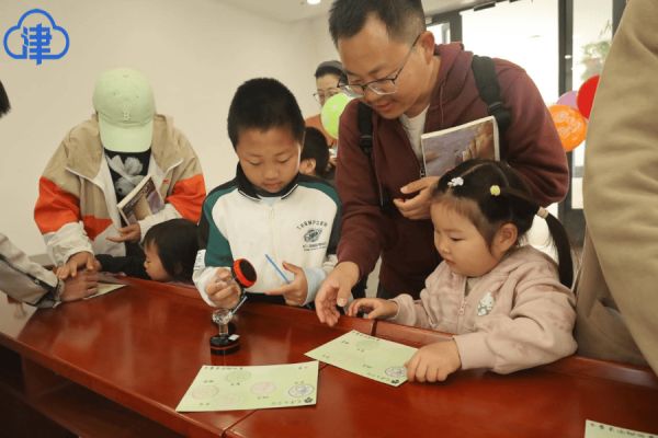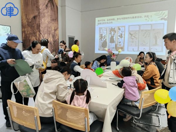 集章点前,早已排起蜿蜒长队。参与者们手持天津文学馆精心设计的“春日游园集章卡”,在每一枚印章前驻足、轻印,仿佛将一整个春天都收进了方寸之间。集齐印章后,大家笑意盈盈地前往一楼展厅领取奖品——妙笔生花钥匙链。春光正好,人们举起亲手制作的诗词书签,在庭院中合影留念,镜头定格的,是春天与文学相遇的美丽瞬间。