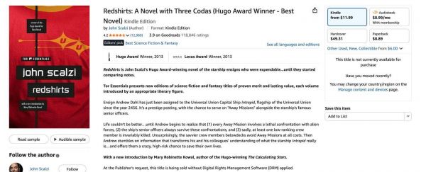不过目前 Kindle 商店里的无 DRM 电子书还不算多,大多数源自 TOR、Baen 出版社。