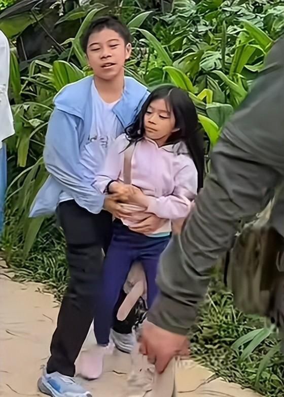 眼空洞,挪不动步”的状态。反观身边的三个孩子,个个活力四射,半点儿疲惫的样子都没有。大女儿霍中妍戴细框眼镜,穿浅色运动服,扎着马尾一路东张西望,对山里的一草一木都充满好奇,时不时就蹲在路边研究植物昆虫,活泼得不行。一开始不少人都没在镜头里找到郭晶晶,还以为这次是霍启刚单独带娃出门爬山。本来带三个孩子出远门就够累了,没想到还能遇上让人闹心的事儿。